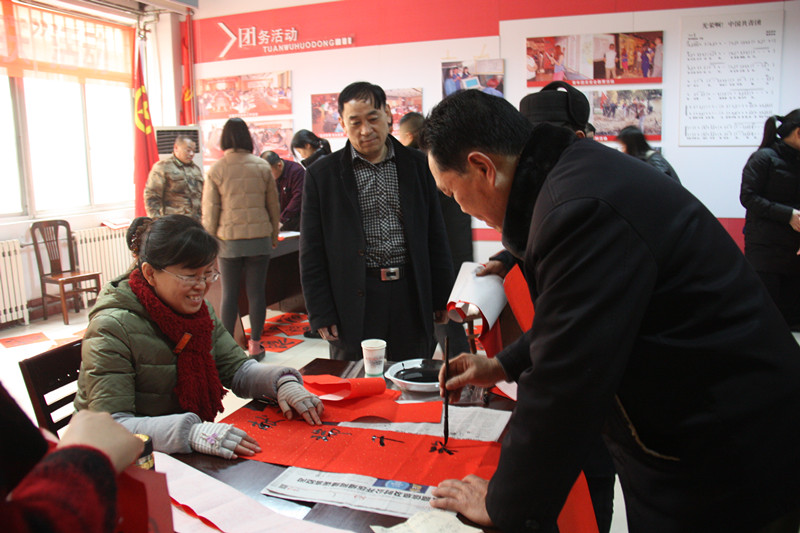 挥毫泼墨写春联,欢声笑语迎新春。值猴年春节即将来临之际,为继承和发扬民族传统,传播集团公司"德兴"文化理念,丰富职工文化生活内涵,凝心聚力,鼓舞干劲,使广大职工度过一个欢乐、祥和的新春佳节,2月5日,太平煤矿政工科、工会办公室联合在俱乐部一楼团员活动室开展了以"金猴欣舞乐竞(中国)德兴、紫燕欢歌太平业盛"为主题的"迎新春、送春联"活动,在矿井上下营造了浓厚的节日氛围。