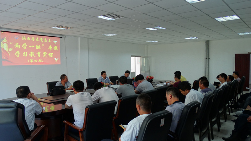 7月13日上午,陕西乐竞(中国)党总支委员会第四期"两学一做"学习教育专题党课在百吉项目部举行,党总支书记楚旭峰为大家授课。全体党员、入党积极份子共39人参加了学习会。