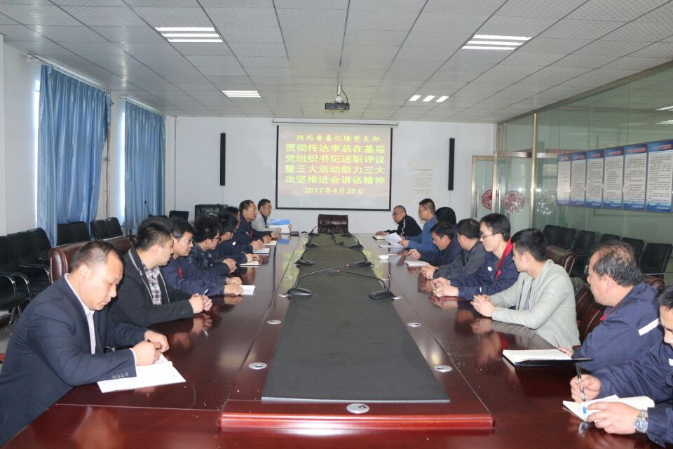4月25日,陕西乐竞(中国)党总支结合"两学一做"学习教育,组织各党支部认真学习集团公司基层党组织书记述职评议暨"三大活动"、助力"三大攻坚"推进会精神。