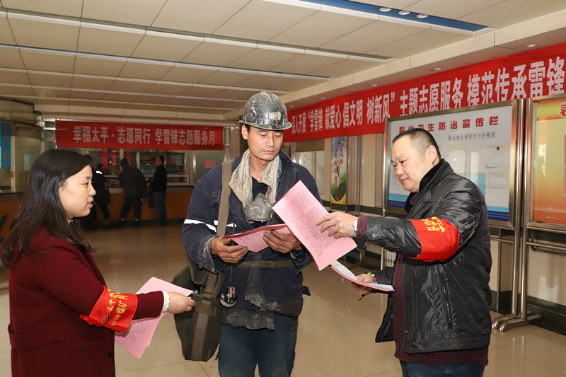 为深入学习贯彻习近平新时代中国特色社会主义思想和党的十九大精神,切实增强"四个意识",牢固树立"四个自信",太平煤矿将3月份列为"幸福太平、志愿同行"学雷锋志愿服务月。3月5日,太平煤矿扎实有效开展学雷锋日系列活动,以"立足岗位学雷锋、扎根煤海争先锋"为主题,内容丰富、形式多样,着力打造系列志愿服务活动亮点品牌,使学雷锋活动成为推动社会主义核心价值观建设的生动载体,团结和组织更多的干部职工投入到志愿服务中来,在矿井上下营造了"学雷锋、当先锋"的浓厚氛围。