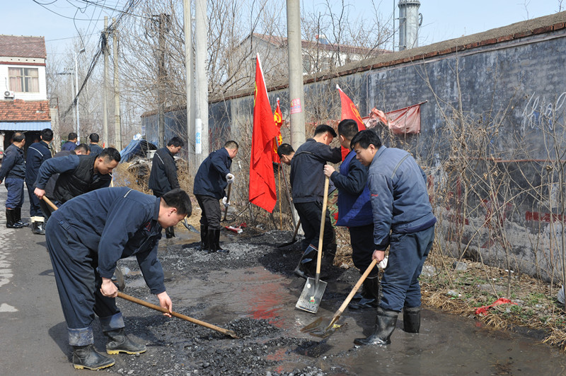 下午1时,志愿者们又自带劳动工具,在通往金威热电厂的公路上掀起一片劳动热潮。此路段因为长年没有维修养护,路面损坏严重,雨天车辆容易陷入坑洼地带,存在一定的安全隐患,志愿者们对此路段进行了碎矸石铺垫,平整了路面,保障了车辆及人员的出行安全 。