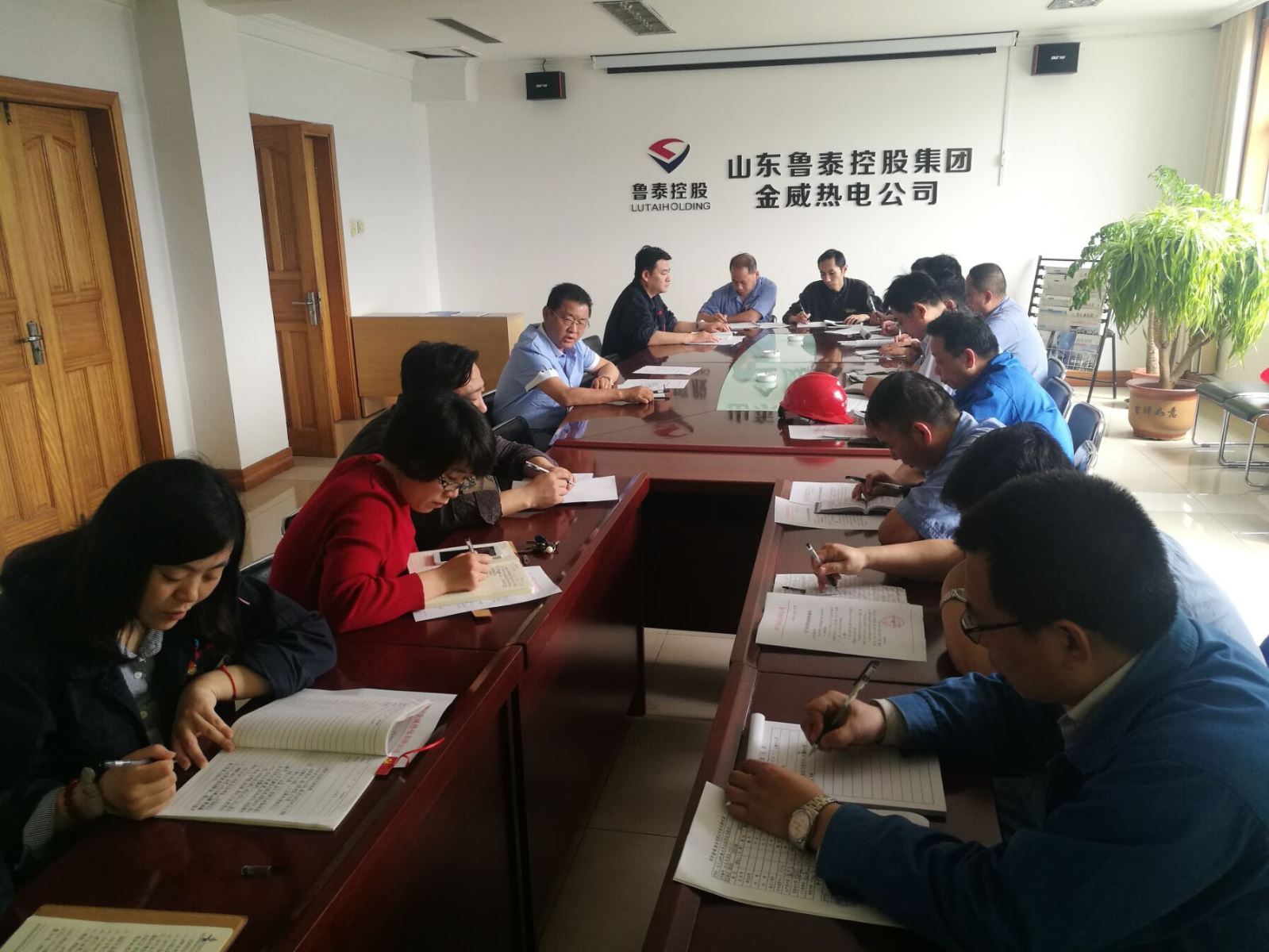 4月3日下午13:00,金威热电公司于利用调度会组织中层以上干部集中学习了省政府安委会《关于枣庄市薛城区泓劲商贸有限公司"3.27"较大爆炸事故的通报》。