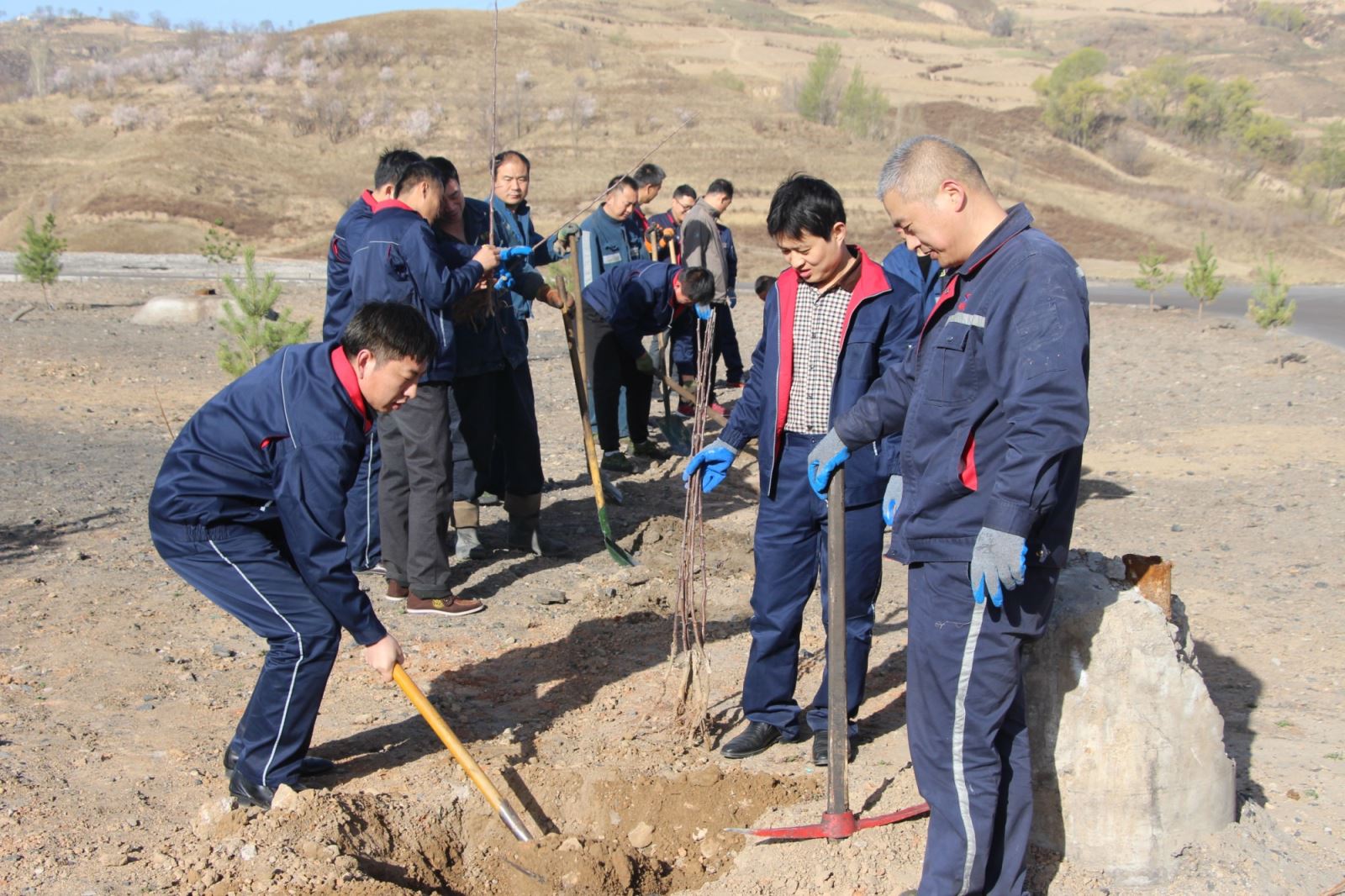 春回陕北万物苏,植树添绿正当时。为大力弘扬共产党人的"种树精神",树立和践行"绿水青山就是金山银山"的理念,4月1日,陕西乐竞(中国)公司海则庙项目部党支部组织干部职工在海则庙煤矿矿区内公共绿地开展了义务植树活动。