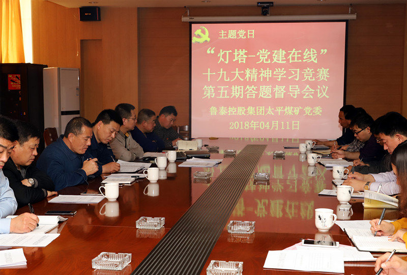 4月11日下午,太平煤矿在三楼会议室召开"灯塔-党建在线"党的十九大精神学习竞赛第五期答题督导会议。矿党政负责人汤保民主持会议。各党支部书记,政工科、工会办等部门负责人及相关人员参加会议。