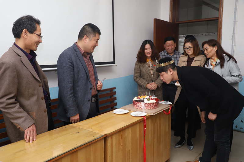 4月12日下午,太平煤矿劳资教育科、工会办公室负责人和工会工作人员带着精心备好的生日蛋糕来到采煤三工区会议室,为该工区职工田兴庆祝29周岁生日。