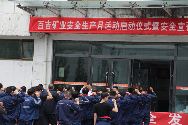 6月1日,陕西乐竞(中国)公司组织百吉、海则庙项目部分别举行了别具特色地"安全生产月"活动启动仪式及签名活动。陕西乐竞(中国)党总支书记、总经理楚旭峰作了动员讲话,副总经理田锋主持活动启动仪式。项目部及矿方管理人员、部门职工参加启动仪式。