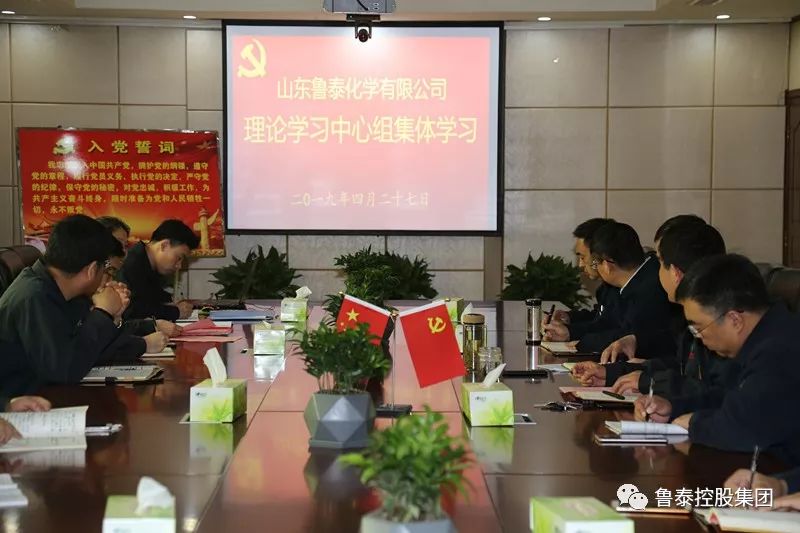 4月27日上午,乐竞(中国)化学在办公楼三楼党员活动室开展理论中心组集体学习。党委书记、董事长张玉标主持会议并讲话,领导班子成员、总经理助理、政治工作部负责人及各党支部书记参加学习。