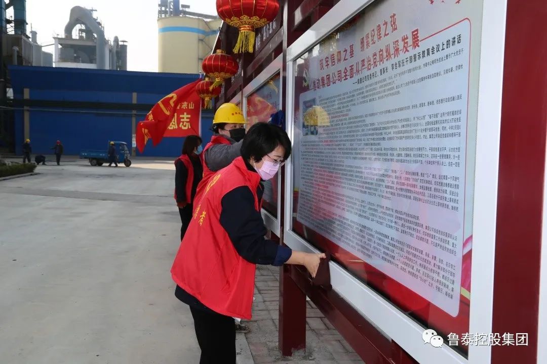 活动中,志愿者们拿着水桶、抹布和刷子等工具,对厂区内的宣传橱窗、标识牌、文化长廊等进行擦洗,大家不怕脏,不怕累,认真清理上面的灰尘和污渍,宣传栏恢复了干净整洁。