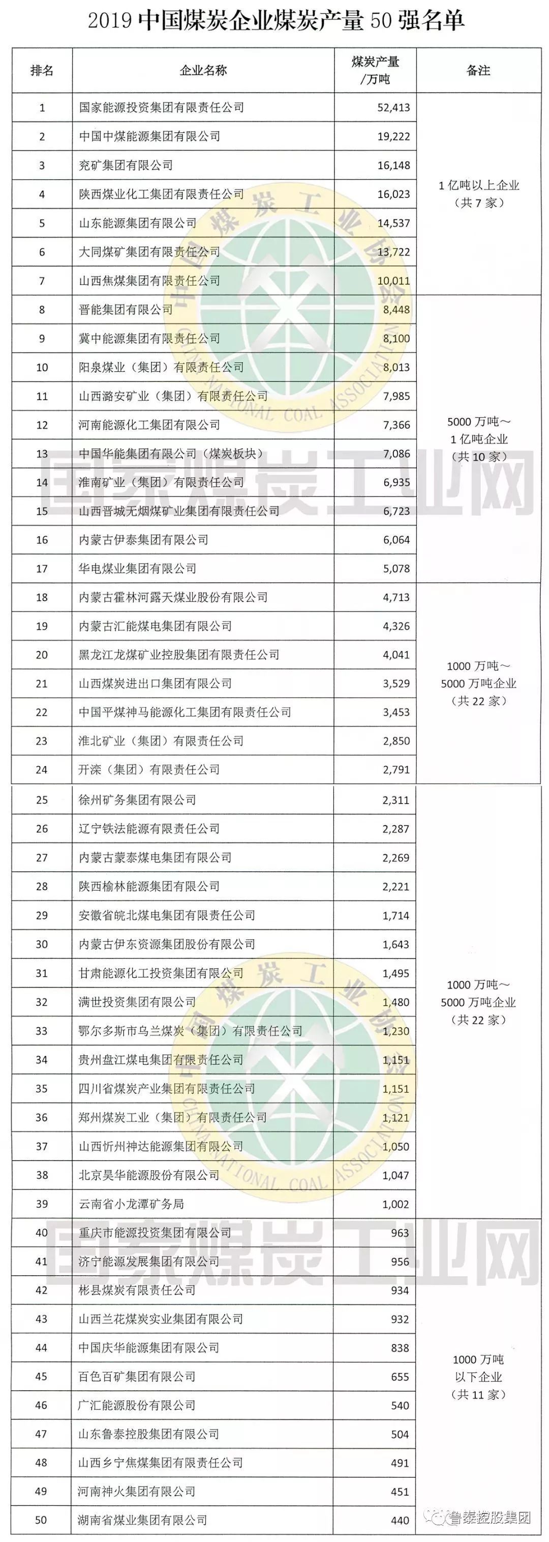 日前,中国煤炭工业协会发布了2019中国煤炭产量50强榜单,乐竞(中国)控股集团以年产量504万吨位居第47位。这是集团公司继上榜2018中国煤炭产量50强榜单后,排名上升三位,再次上榜中国煤炭产量50强。