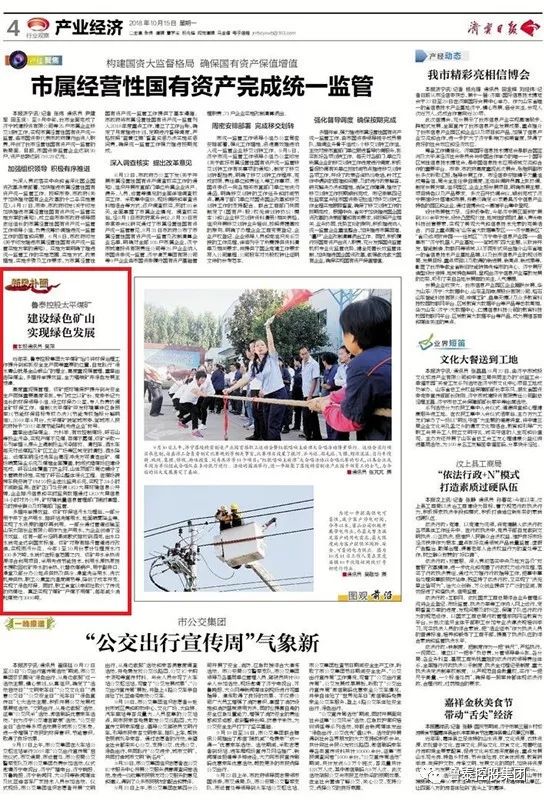 多措并举提效益。该矿环保站污水处理后,一部分用于井下生产用水、排矸站洗煤用水、地面喷雾降尘等,实现了水资源的循环再利用。一部分通过管道运输至山东太阳纸业有限公司作为生产用水,为企业创造了经济效益。还有一部分经明渠间歇式排放到泗河,出水口水质完全达到国家标准。该矿对原有排污管道进行改造,实现雨污分流。今年1至10月份累计处理废水约300多万吨,水质均在标准范围之内。该矿井水余热资源综合利用项目,采用先进节能技术,利用水源热泵技术提取回收矿井水的余热,代替燃煤锅炉,用于副井口、澡堂及部分办公地点供热及供冷、澡堂洗浴用水、洗衣机房供热、职工公寓室内温度调节等,降低了成本开支,实现了绿色环保。同时,职工食堂以电磁灶取代了传统的燃煤灶。真正实现了煤矿“产煤不用煤”,每年减少消耗煤炭约3000吨。