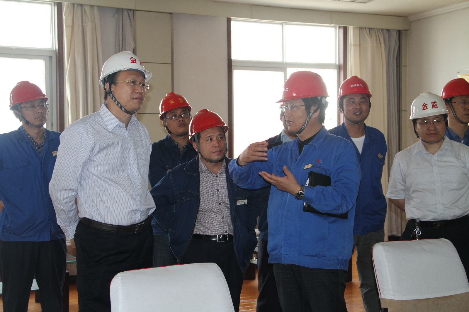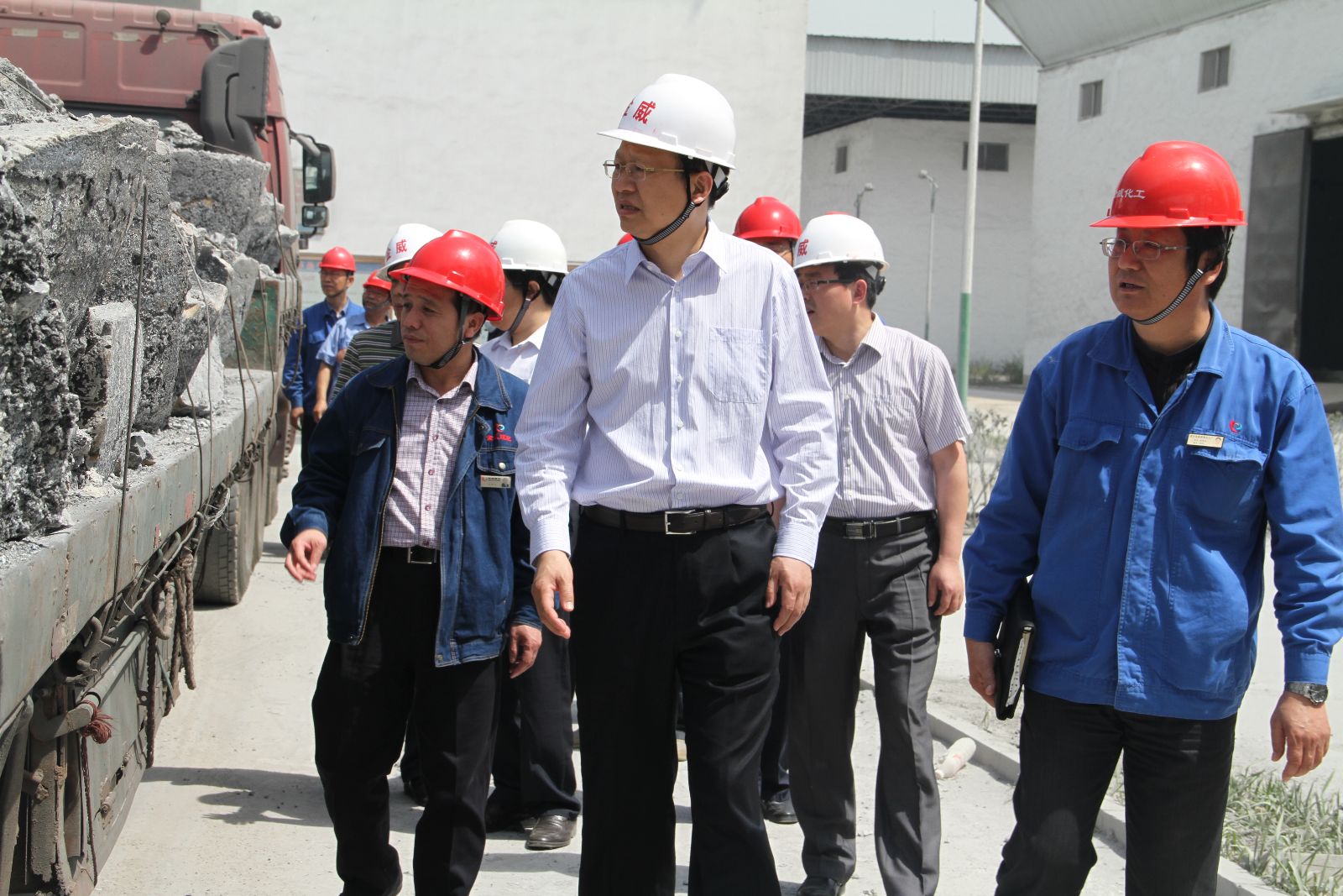到达金威煤电后,李合军先到化工分公司调度室,了解了监控系统安装及运行情况,并叮嘱有关人员要提高监测监控的效果和质量,确保发挥作用。在包装车间,李合军查看了聚氯乙烯装运情况,就扩大聚氯乙烯存放地点作出明确指示。转化器、合成炉运行情况一直是李合军牵挂的重点。他来到设备运行区,听取了设备运行情况的汇报,就提高设备运行效果,提出建设性建议。原材料供应问题,也是此次调研的重点,他来到电石破碎车间,询问了工作流程、除尘情况,现场查看了电石质量。